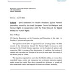 واكدت المؤسستان ان مليشيا الحوثي تهديدا جسيما لحالة حرية الرأى والتعبير وحرية الصحافة في مصر وأن كثيرا من الشهادات الحية من جانب صحفيين يمنيين اكدت تعرضهم للمضايقات والمراقبة والتهديدات بالقتل من جانب مليشيا الحوثي وهو ما يمثل ، انتهاكا للقانون الدولي لحقوق الإنسان، بما في ذلك الحق في السلامة البدنية والحق في الحياة والحق في حرية التعبير.