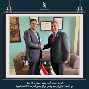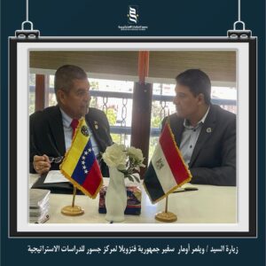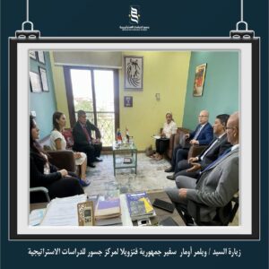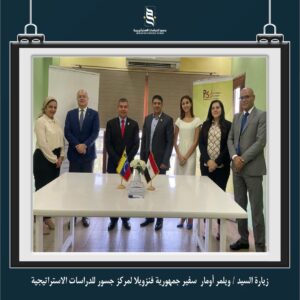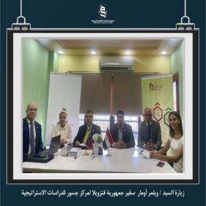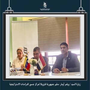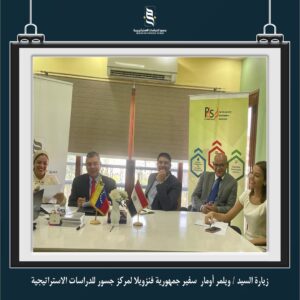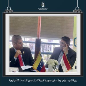 قام وفد من سفارة جمهورية فنزويلا (برئاسة السفير) بزيارة مركز جسور للدراسات الاستراتيجية ضمن برنامج دراسات أمريكا اللاتينية الذي يتبناه مركز جسور ويهدف إلي دراسة العلاقات الجيوسياسية لدول أمريكا اللاتينية والكشف عن التطورات فيما يخص قضايا الأمن الغذائي وموارد الطاقة والتنمية الاقتصادية وقضايا التعايش المشترك والنمو المستدام في هذه الدول.